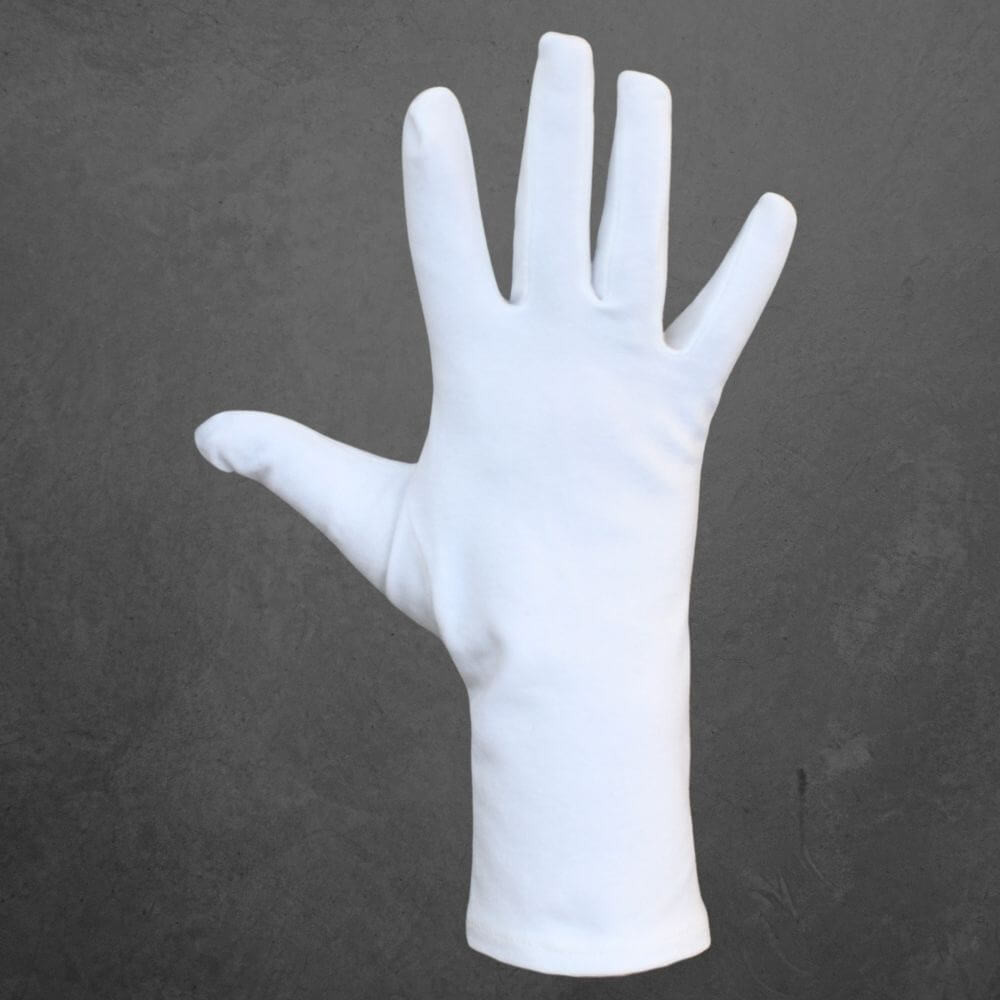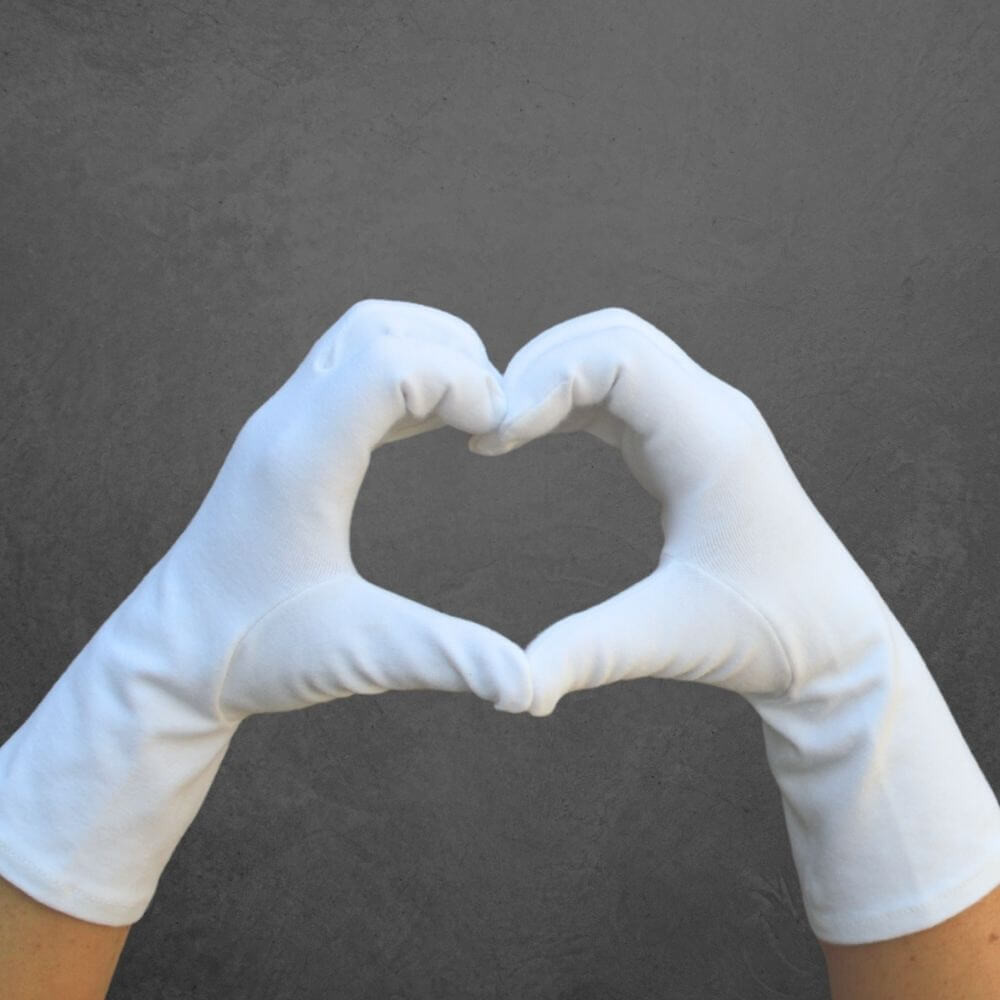 Rukavice jsou vyrobeny z velmi kvalitní bavlny a jsou velmi precizně ušity. Rukavice lze je prát v pračce na 40 °C.