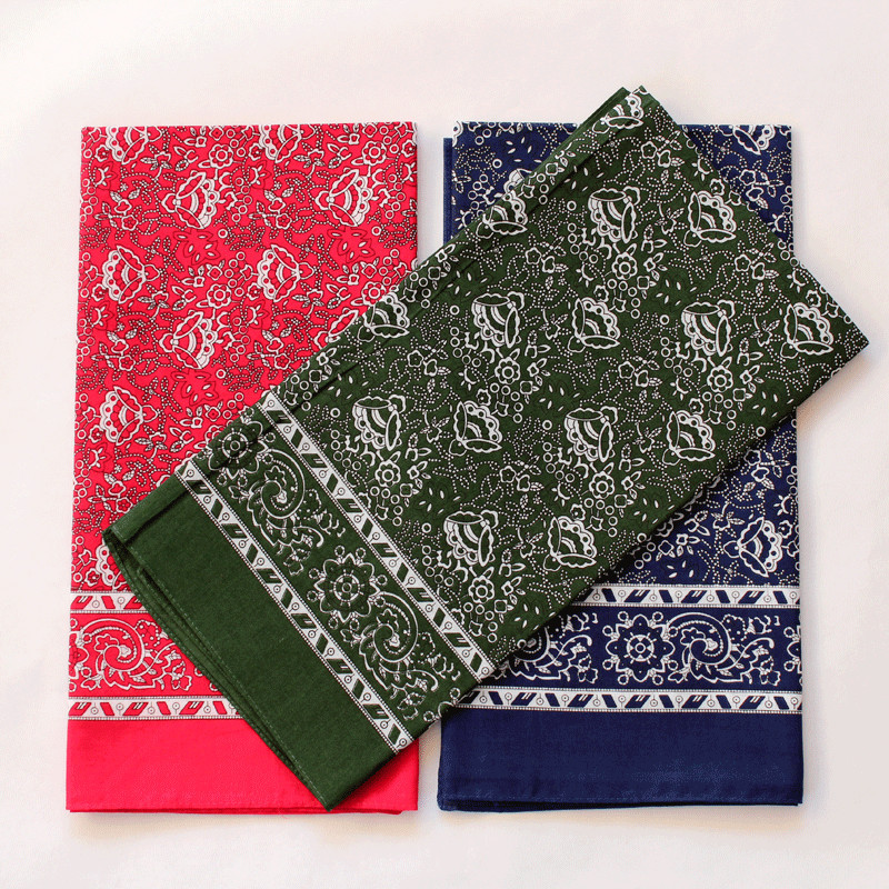Tradiční bavlněný šátek o velikosti 70 x 70 cm s kašmírovým vzorem se stane netradičním doplňkem vašeho šatníku nebo výbavou správného trampa, rybáře nebo vodáka. Bavlněný šátek má nespočet možností využití. Nemusíte jej pouze vázat kolem hlavy, i když ve větrném počasí poslouží šátek na hlavě naprosto skvěle. Příjemný bavlněný šátek si můžete uvázat kolem krku, na hlavu nebo může posloužit i jako kapesníky, pokud není zrovna žádný po ruce.