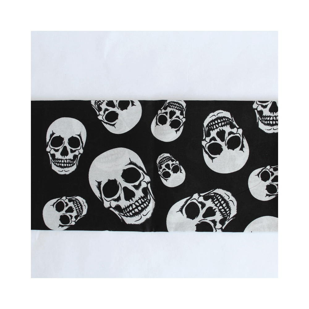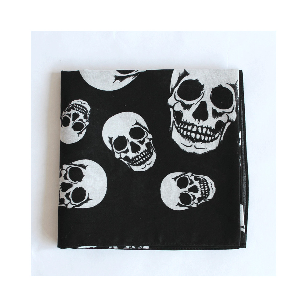 Originální bavlněný šátek o velikosti 70 x 70 cm se vzorem bílých lebek na černém podkladu se stane netradičním doplňkem vašeho šatníku nebo výbavou milovníka harlejů. Pánský bavlněný šátek má nespočet možností využití. Nemusíte jej pouze vázat kolem hlavy, i když ve větrném počasí poslouží šátek na hlavě naprosto skvěle. Příjemný bavlněný šátek si můžete uvázat kolem krku, na hlavu, nebo stane se originálním doplňkem na maškarní večírek nebo jinou tematickou akci.