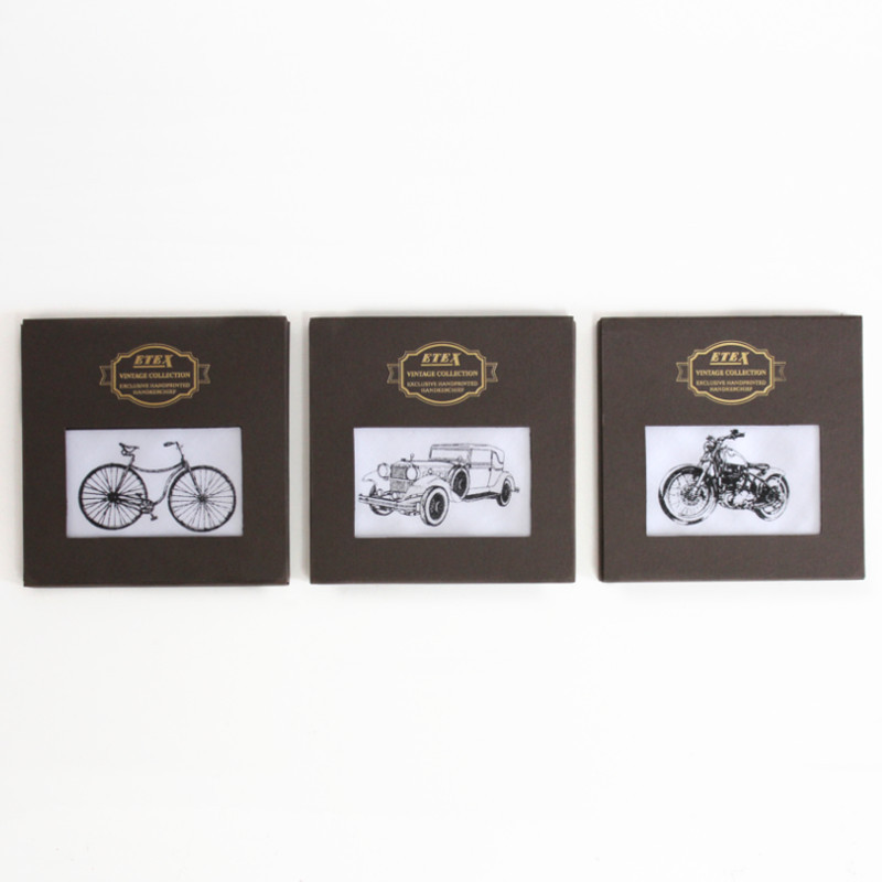 Luxusní pánský kapesník z Vintage kolekce s exkluzivním ručním tiskem historického motocyklu v dárkové krabičce potěší každého moto nadšence. Motiv automobilu je ručně tištěný na sněhobílém kapesníku a každý kus je tedy originál. Látkový kapesník je balen v dárkové krabičce, proto bude ideálním dárkem, který potěší každého muže.