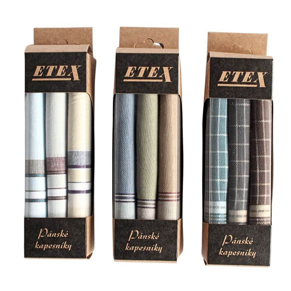 Velikost kapesníků je 40 x 40 cm a jsou od tradičního českého výrobce ETEX.