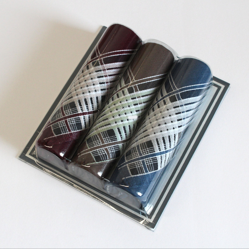 Sada 3 kusů kvalitních pánských kapesníků v oblíbeném průhledném balení. Velikost kapesníku je 40 x 40 cm.