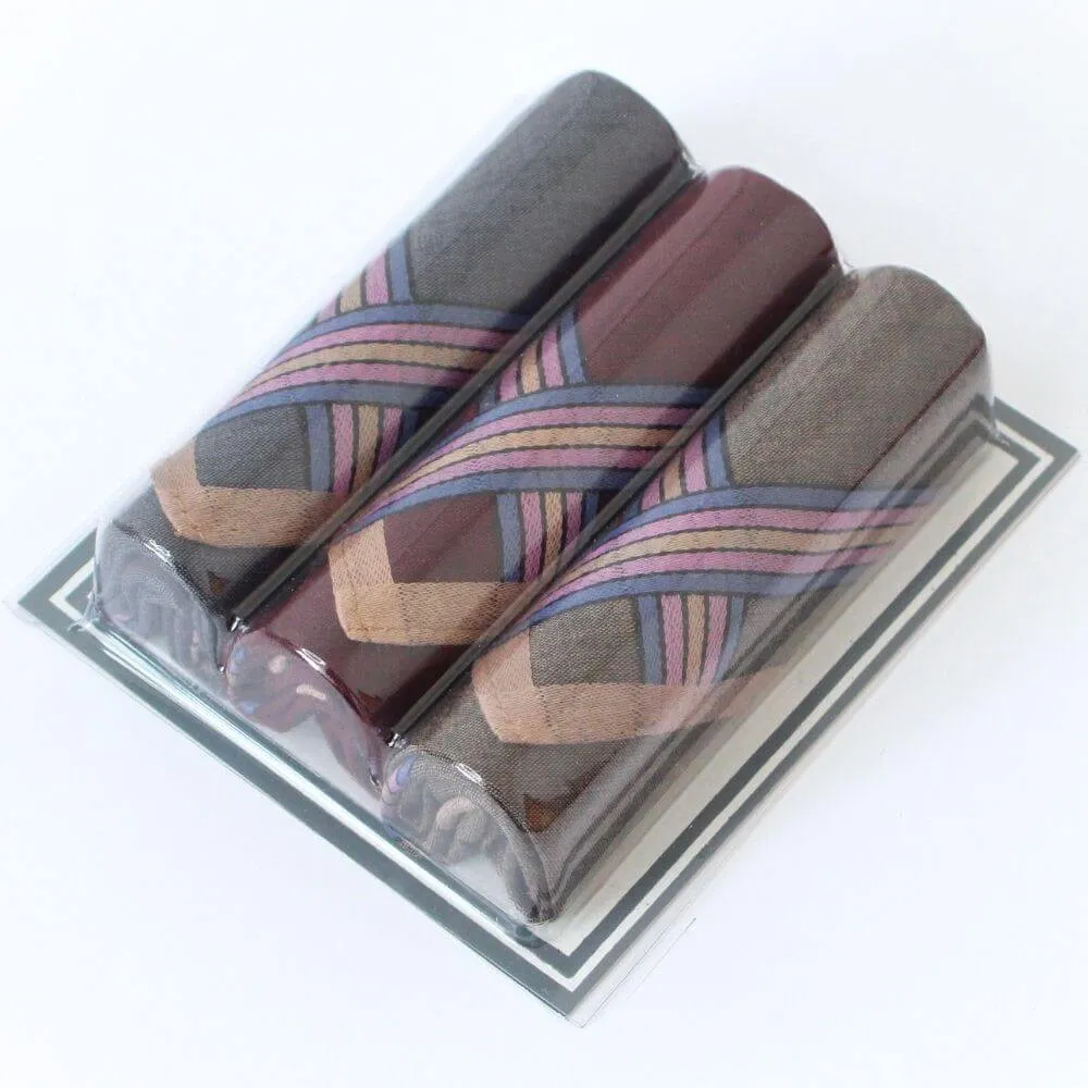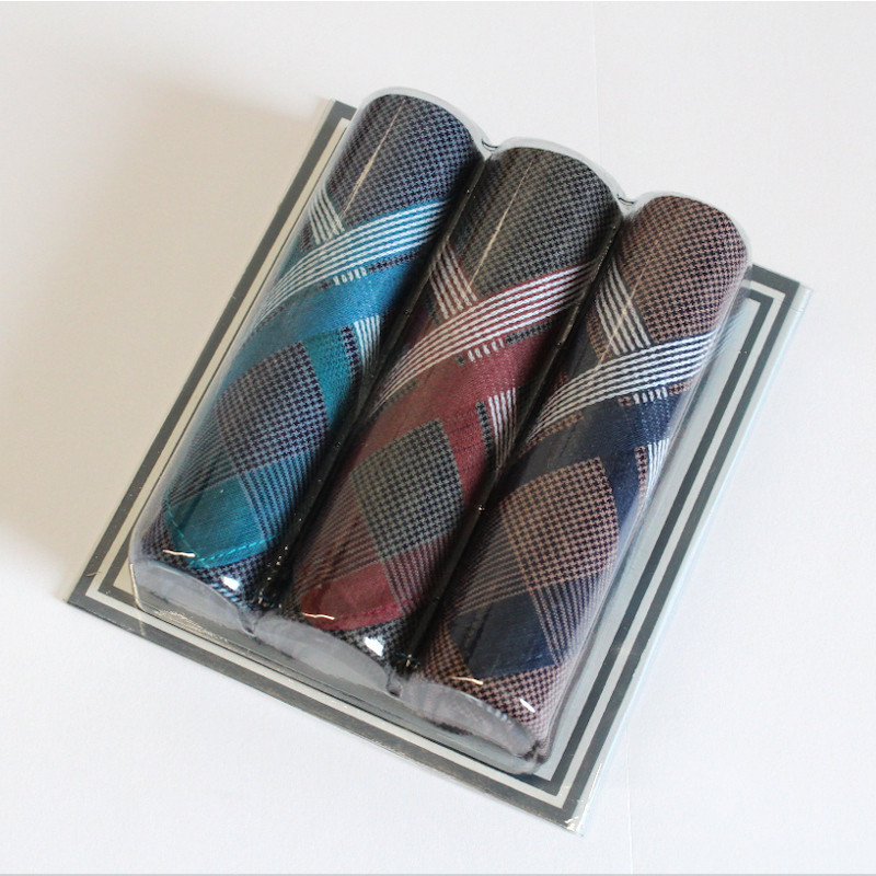 Sada 3 kusů kvalitních pánských kapesníků v oblíbeném průhledném balení. Velikost kapesníku je 40 x 40 cm.
