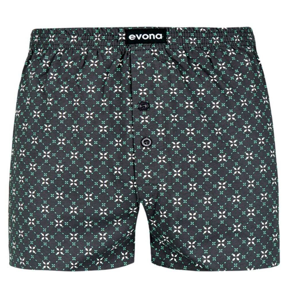 Tmavě zelený potisk dodává trenkám klasický vzhled, takže se skvěle hodí jak na spaní, tak na běžné nošení. Záruka kvality od českého výrobce EVONA.
